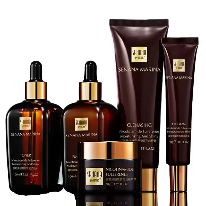Nourish and rejuvenate your skin with this 5-piece skincare set designed for women, combining moisturizing, hydrating, and oil-control benefits in one comprehensive routine. Infused with fullerene, nicotinamide, and caviar yeast essence, this set helps refine pores, improve elasticity, and restore a radiant glow.